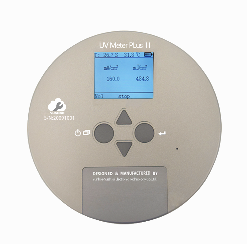 云禾YUNHOE生产的UV能量计是一款经过苏州云禾专业调校的紫外辐照计可同时显示光照度和能量计,并可显示照射温度和照射曲线以及可导出数据。